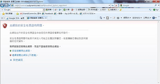 Q 2-08. 開始連線時,IE會出現 "憑證錯誤" 的錯誤訊息,需手動按 "繼續瀏覽些網站" 可否不出現這個頁面?